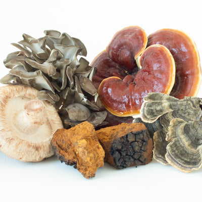 A blend of five functional mushrooms (Reishi, Turkey Tail, Shiitake, Maitake mushrooms and Chaga extract powders) known for their immune-modulating benefits.