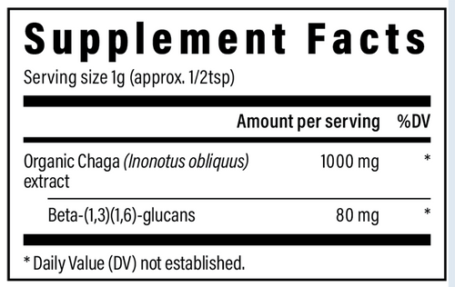 Take ½ teaspoon (approximately 1 gram) of Chaga extract powder daily with or without food, or as recommended by your healthcare professional.
