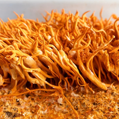 We partner with experienced mushroom growers using Di Dao 地道(spiritual homeland) cultivation practices to harvest mushrooms in their geo-authentic environments. Our mushroom Cordyceps-M extract contains only the real mushroom—grown, extracted, and tested with integrity.